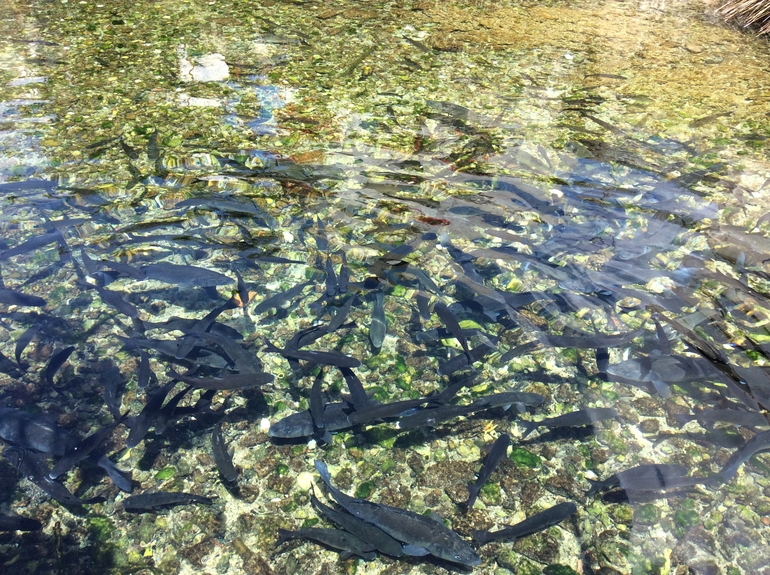 Видели дельфинов, когда проплывали мимо рыбной фермы, они выпрыгивали и как будто приветствовали нас!