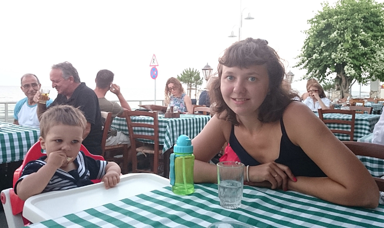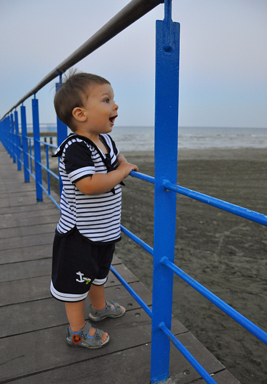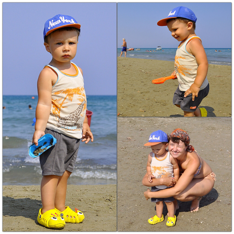 Яся был занудным истиричным монстриком! При виде песка он орал и отказывался по нему идти, приходилось нести и ставить на подстилку, там и играл. К морю подходить отказывался. Были редкие моменты, когда удавалось вытащить на песок и засунуть в море. Но, конечно, все равно рады, что съездили. И самое главное - не болели!