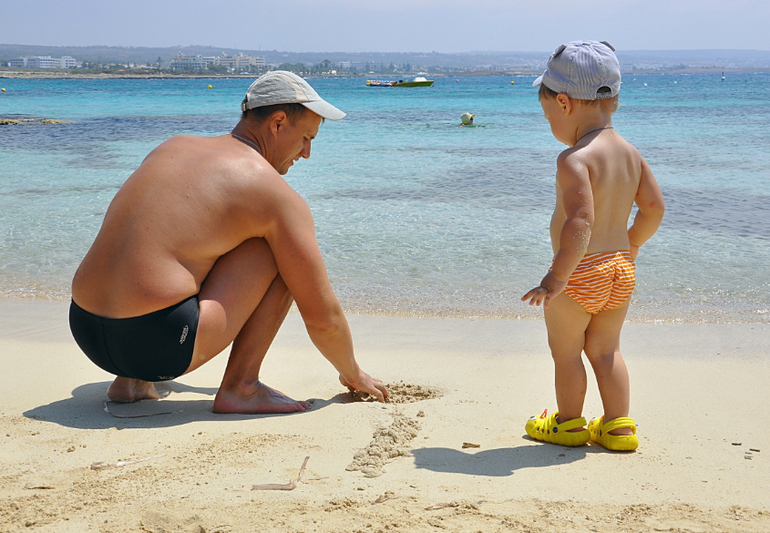 На фото муж пытается уговорить Ярослава искупаться. Безуспешно.