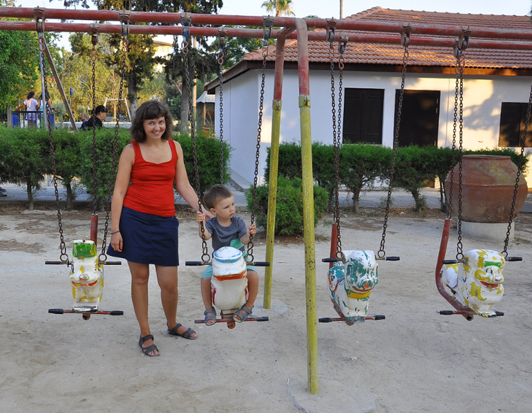 Во второй половине дня погуляли по старому городу Ларнаки, добрели до небольшого парка с хорошей детской площадкой. Там Ясю обворожила местная девочка. Она и гладила его и поцеловать пыталась, в итоге малыш не устоял :) сам начал за ней бегать. Еле ушли :)
