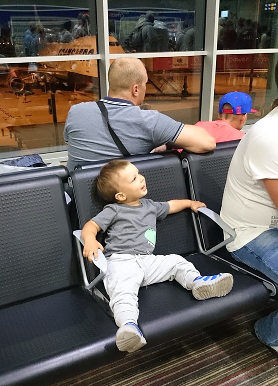В 23:30 сели в самолет, а потом еще 40 минут в самолете ждали взлета. Самолет взлетел- дала Ярославу бутылочку - уснул. На посадке проснулся, переодели. В такси снова заснул. Ну и дома еще пару часов поспал. В целом выспался, в отличии от нас. Постараемся не брать больше ночные перелеты, если лететь не далеко.