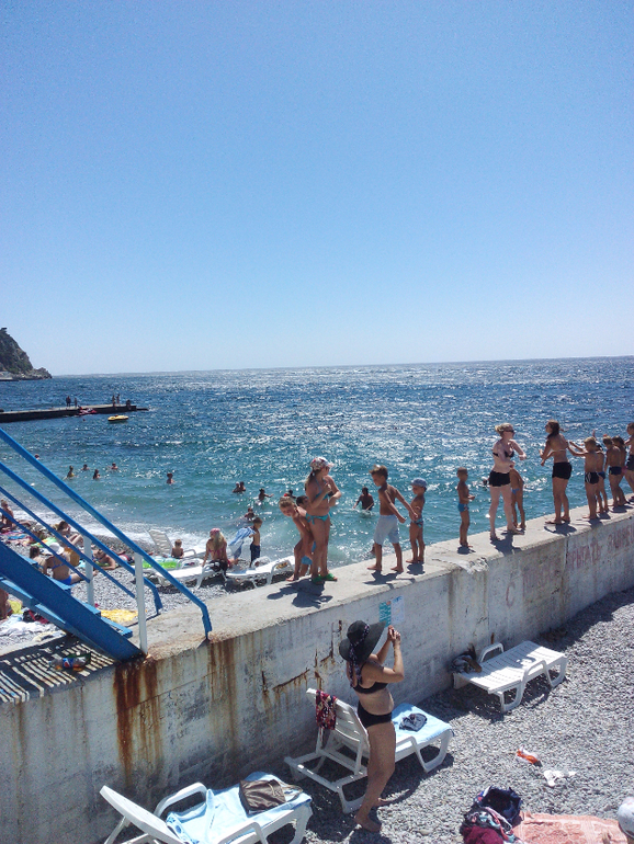 мы отоспались и вечером решили сходить на пляж. Сначала очень удивились , так нас встретила вечерняя Гаспра