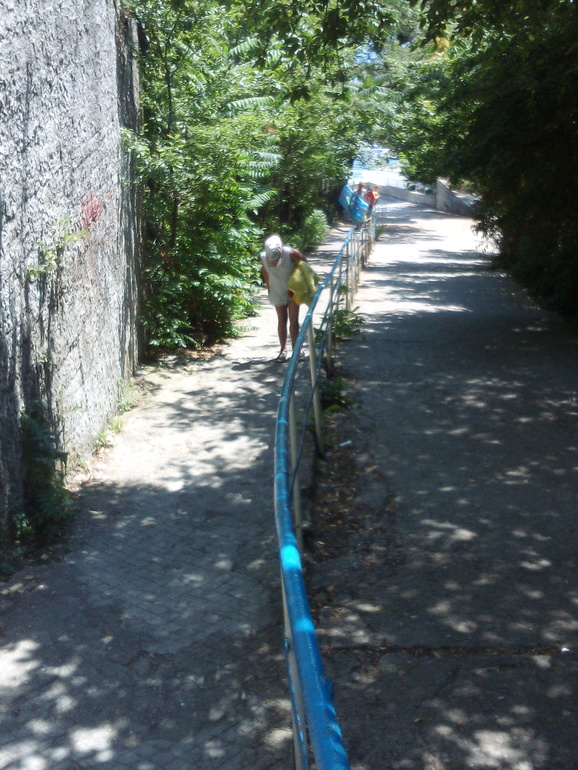 Это только малая часть дороги))) Там конечно есть канатная дорога,но она была до половины пути и выходило накладно 120 р,с человека спуск-подъем, а ходили мы по два раза в день . Нет мы конечно не совсем отказывали себе в том удовольствие, тем более Егорыч очень нравилось и проходя мимо он рвался вверх