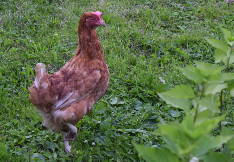 А еще бывает, стоишь, смородинку собираешь, оборачиваешься а там курица за тобой наблюдает..)
