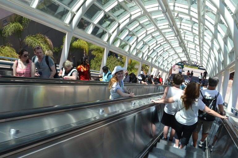 Тут опять очередь была внушительной. Был как раз полдень, жара и очередь освежают холодным паром. Как я уже писала ранее, мы встали в очередь для одиноких посетителей. Этих отдельных пассажиров подсаживают на свободные места к тем, кто отстоял основной путь. Получается быстрее чем, основная. Рекомендую.