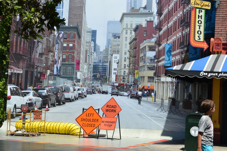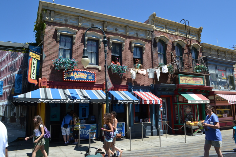 Сначала возят мимо безликих, но действующих съёмочных павильонов. Затем мимо декораций разных современных городов: Нью-Йорка, Парижа, Лондона.