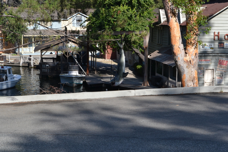 То тут, то там из зарослей поднимают головы пластиковые травоядные. С упаковкой попкорна дерутся малыши. Но вскоре мы видим, что основной путь перегорожен разбитой лодкой, и мы направляемся в сторону - на заброшенную бетонную базу. За стенкой кричит зверь.В ещё одной лодке хозяйничают агрессивные хищники. А с самого верха падает раздавленный автомобиль.