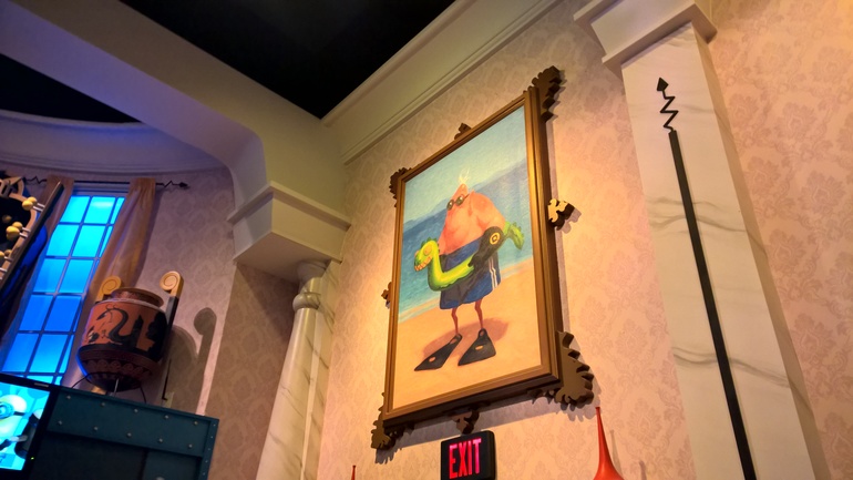 Павильон, посвященный одноименному мультику про миньонов. Здесь также в формате 3D, для чего предстоит усесться, пристегнуться, надеть очки и окунуться в мир мультяшных героев. Погружение полное - шатает, мотает, бросает из стороны в сторону и т.д. Я думала после Симпсонов больше не переживу этих мотыляний, но нет...все нормально. Там помещение больше и ожидание меньше.