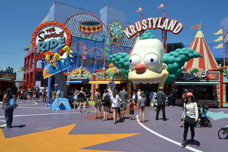- А дальше уже по желанию куда идти, так как народу уже стало много, мы пошли на Симпсонов, так как табло обещало время ожидания 15 мин, по факту оказалось все 30