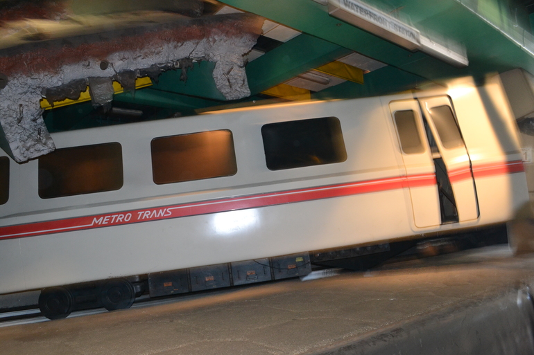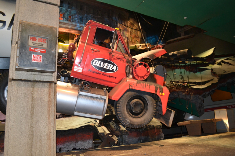 После заезжаешь в очередной ангар, где переживаешь живую сцену из "Психо" с кидающимся на туристов с ножом Норманом Бэйтсом, и разрушающаяся на ваших глазах станция метро.