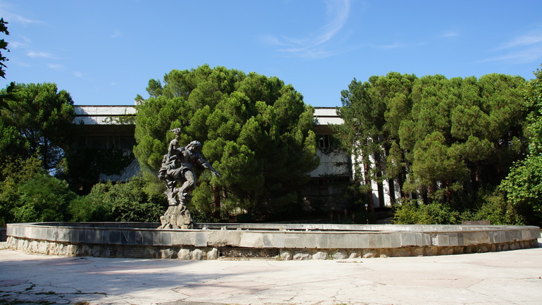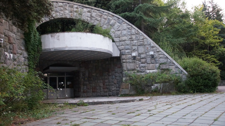 Санаторий "Крым" - военный, был построен в 60-ые годы прошлого века. И, конечно, за более чем полувековую историю многие строения износились, некоторые пришли в полное запустение. Сейчас санаторий постепенно реконструируют. Но кое-какие уголки поражают разрухой. Например, в этом здании со сферической крышей когда-то находилась оранжерея "Зимний сад". Представляю, какая там была красота!