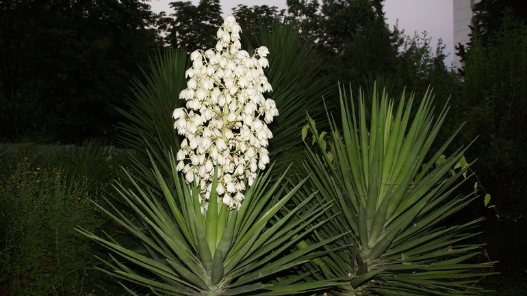Настоящий рай кипарисов, магнолий, кедров, пальм.... Но самое удивительное: нам посчастливилось увидеть цветущую юкку! В Крыму она вырастает до размеров кустарника, не то что в цветочных горшках в наших квартирах. А цветет потрясающим созвездием белых колокольчиков. Кстати, в Никитском ботаническом саду мы тоже увидели заросли юкки, но не одна из них не цвела... Вот наша красавица: