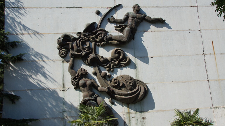 Везде следы советской эпохи. На многих зданиях модные в то время декоративные элементы, композиции. А мне нравится... Еще бы в порядок привести, и, вообще, красота была бы...