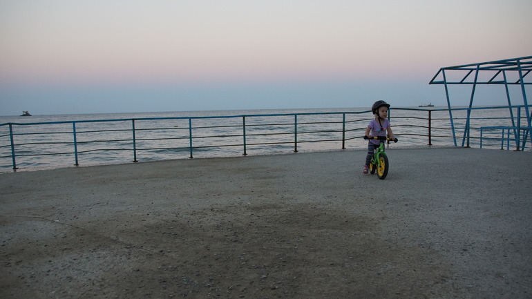 В санатории есть своя набережная. Это единственное ровное место. То есть без подъемов в гору и спусков. Здесь Аня могла вовсю оторваться на беговеле.