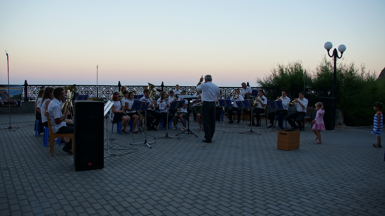 В санатории и сегодня есть свои чудесные традиции. Несколько раз в неделю вот уже 24 года подряд на набережной играет духовой оркестр Партенитской музыкальной школы. Играть начинают, когда еще светло, а заканчивают уже в темноте.