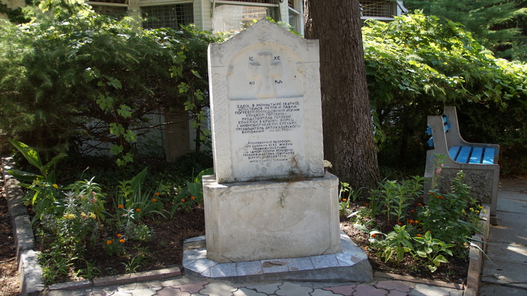 С этим местом связано имя знаменитого православного деятеля - епископа Иоанна Готского. При нем на Аю-Даг был построен монастырю святых апостолов Петра и Павла. А во время строительства санатория руины и место археологических раскопок оказались на территории санатория. По легенде, Иоанна похоронили на территории монастыря в Партените, но место погребения до сих пор не найдено.
