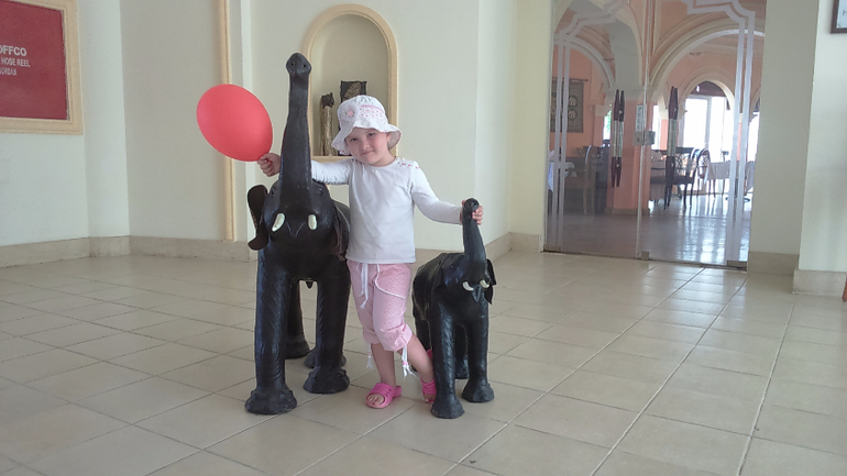 В отеле два ресторана аля-карт, итальянский и индийский. В основной столовой Элинка ела только дыню и огурцы. На мои уговоры попробовать хотя бы рыбку так и не поддалась.