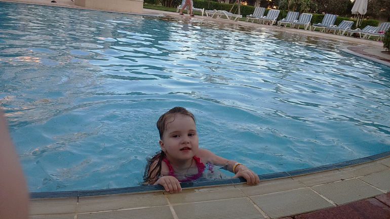 Температура, которой нас так пугали, была очень даже хорошая, максимум 34 градуса. Про море дочка вообще сказала, что оно холодное. И действительно, первые минуты две было очень холодно. Вход только с понтона. Первые 20 минут у меня была самая настоящая паника, я вцепилась в бортик и не могла пошевелиться. Спасибо женщине, которая видя мой страх, взяла Элину и предложила мне попробовать отпустить руки. Я долго собиралась и отпустила... и поняла, что море держит и не обязательно чувствовать дно))) Элина увидев что я не боюсь, также пошла в воду. Так мы проплавали весь отдых, выходя только на сон и обед). Спасибо большое той женщине, если бы не она, мне кажется я бы так и не решилась отпустить руки)