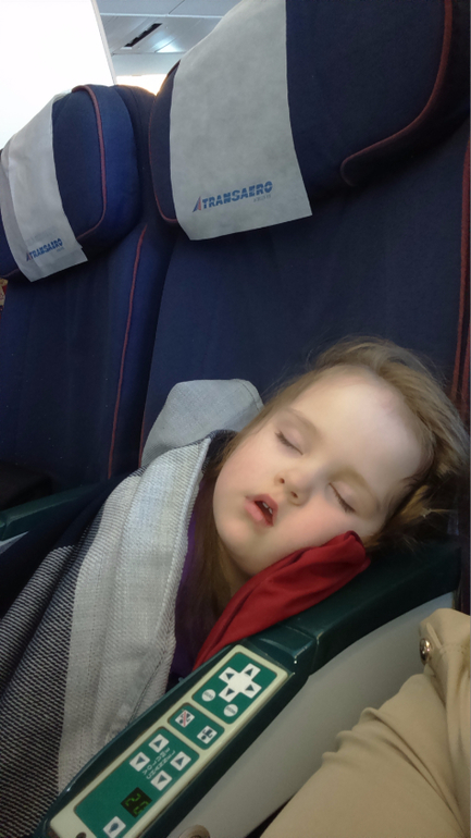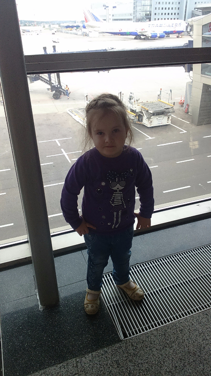 В аэропорту были максимум час, только прошли паспортный, как объявили посадку) Элишка в самолете вела себя очень хорошо, взлет даже не заметила, а через пол часа уснула.