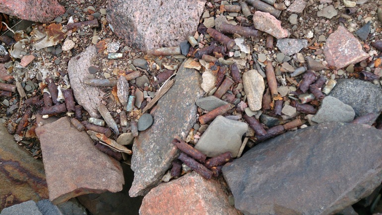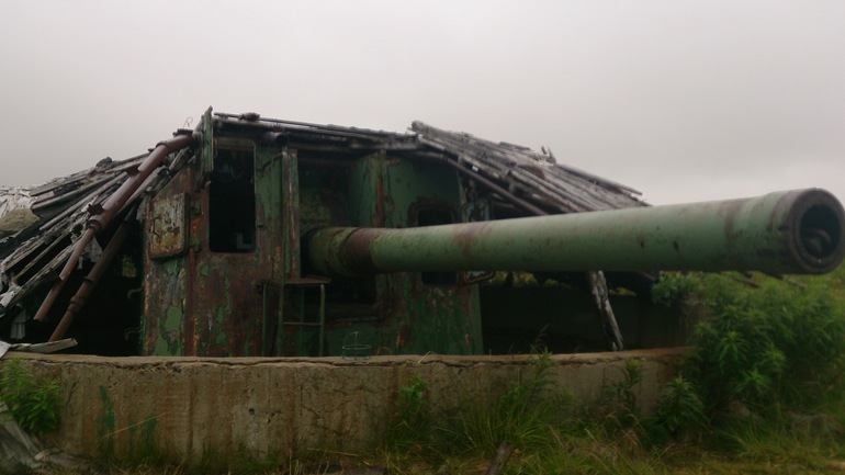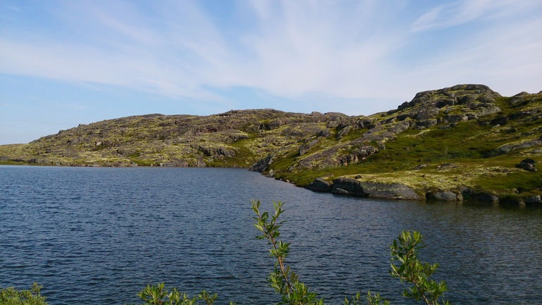 День десятый. Продолжаем путь по западному берегу полуострова Средний. Доезжаем до батареи Поночевного: это легендарная 221 береговая батарея, геройски воевавшая во время ВОВ. От нее практически ничего не осталось. Рядом, уже после Войны, выстроили комплекс береговой обороны, состоящий из 4-х орудийных блоков и командно-наблюдательного пункта. Батарея была построена в начале 1950-х гг., в составе 4 орудийных блока, блок силовой станции и блок КП. Осматриваем комплекс и продолжаем путь, спускаемся к берегу и продолжаем путь на Муста-Тунтури: во время ВОВ более трёх лет в этом месте проходила линия фронта, по южным склонам хребта располагались немецкие войска, а по северным - советские. «…кто владеет Рыбачьим и Средним, тот держит Кольский залив. Без Кольского залива Северный флот существовать не может» из дневника адмирала А. Г. Головко. Именно на этом самом северном участке фронта шли самые ожесточенные бои. Хребет Мустатунтури единственное место, где немецкие войска не смогли перейти сухопутную границу СССР. Во время Петсамо-Киркенесской операции 10 октября 1944 года соединения Северного флота (12‑я и 63‑я бригады морской пехоты) прорвали оборону немцев именно здесь путем тысяч людских жизней. У подножия хребта расположена бывшая база геологов, где сейчас замечательный человек Юрий Александрович своими силами создал музей. После покидаем полуострова, сворачиваем на старую немецкую дорогу и проезжаем на материк. Дорога прекрасно сложена, камни соединены металлическими крюками, и даже спустя почти 70 лет лучше чем многие современные дороги в этих краях. Эта дорога снабжала Егерей. Останавливаемся на ночевку на берегу озера: рядом оборонительные сооружения, остатки землянок, на земли - пули, гильзы, части от экипировки. В 400 метрах от нас лежит снег.