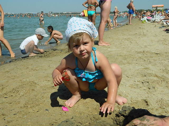 500 рублей с человека в сутки,и понёсся отдых.Погода была супер, в тени 32-34,тем-ра воды 23.Я перед поездкой очень переживала,чтобы не было аклиматизации и чтобы не подхватить ротовирусную инфекцию,так вот дочка плескалась в воде часами и вода попадала и в рот и в нос и слава Богу ничего не подхватили,единственное по приезду в Анапу начался жуткий кашель и осип голос,я перепугалась что в поезде просквозило,позвонила нашему врачу в Москву и она посоветовала давать Эреспал и Афлубин,я брала с собой много лекарств,но от кашля не брала,купили на месте,3 дня и кашля как не бывало,думаю это и была аклиматизация.Кушать нам понравилось в Мама Мия,очень хорошая столовая,всё очень вкусно.Иногда ходили в кафе,но младшей я готовила всегда дома.Ходили мы на санаторный пляж,там и народу меньше и грязи.Вода чистая