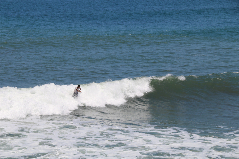 Здесь экстремальщики-серферы обуздывают волны, собирая толпы туристов, глазеющих на их отважную борьбу с сильным течением и за риском сразиться со скалами