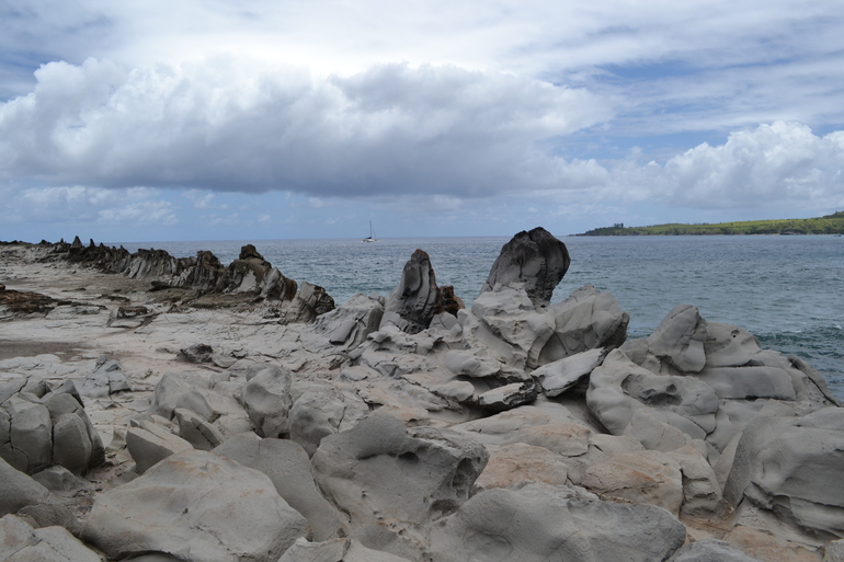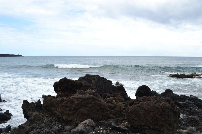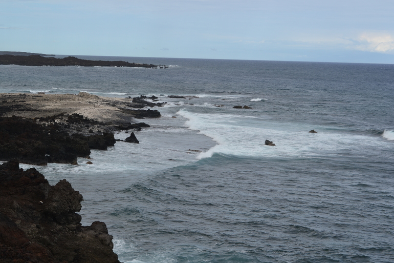 Берег в той части острова очень не дружелюбный, сильные волны, набегающие на лаву, как там сумел Ла Перуз высадится - загадка, выброшенные на берег кораллы, как будто чьи-то кости)))![]()