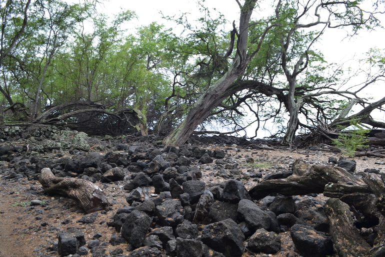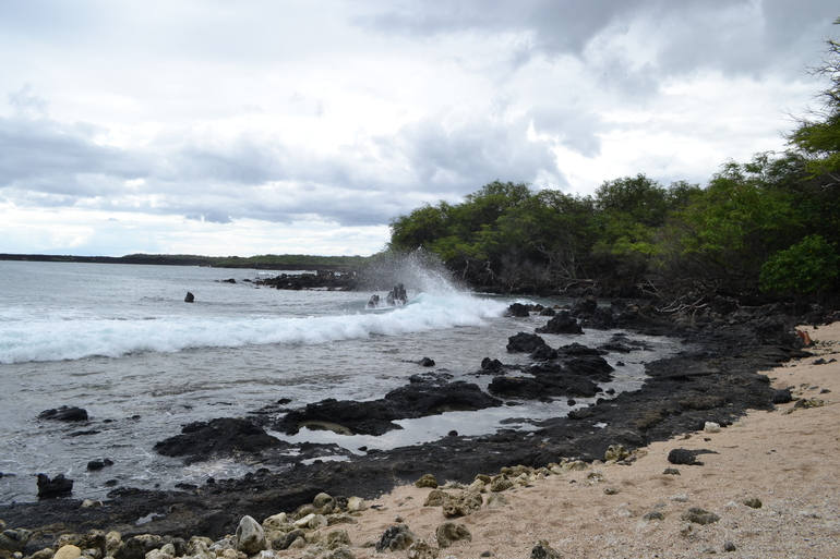 Подойдя к океану пошли влево вдоль берега, по лаве, через небольшой участок с деревьями. Вообще в том направлении находится природный «аквариум», но официально в нем последние несколько лет плавать нельзя из-за нарушенной экосистемы. Некоторые забивают на запрет, но мы не стали.