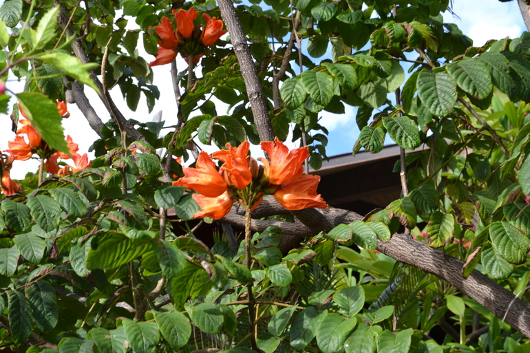 На улицах много растительности - манговые деревья с плодами, цветущие кусты. Хорошо))