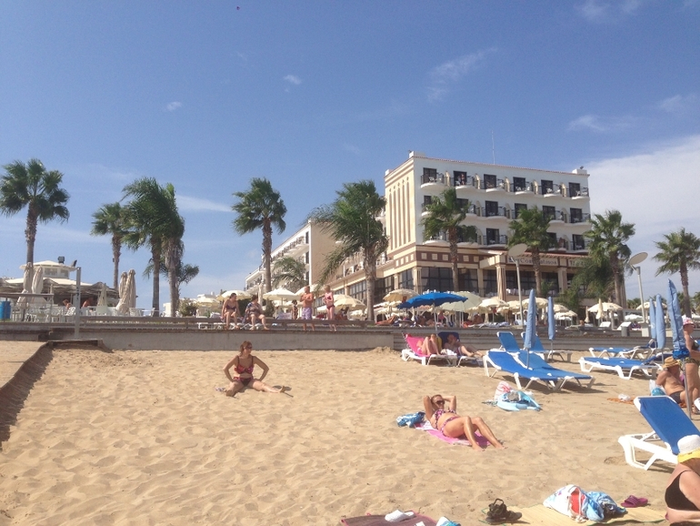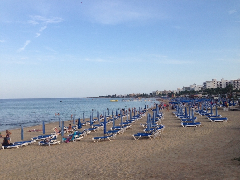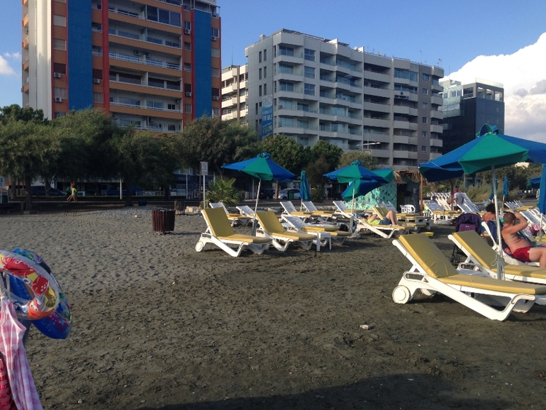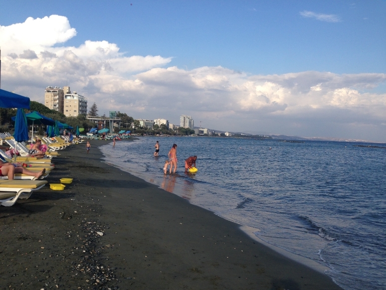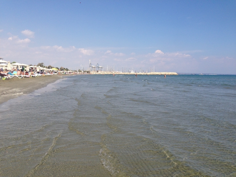 песок в Лимассоле плотный, похожий на Ларнаку, только еще и с примесью гальки. Пляж грязноват, близко дорога. Рядом порты, в общем избалованным пляжами Протараса, нам тут совсем не понравилось((