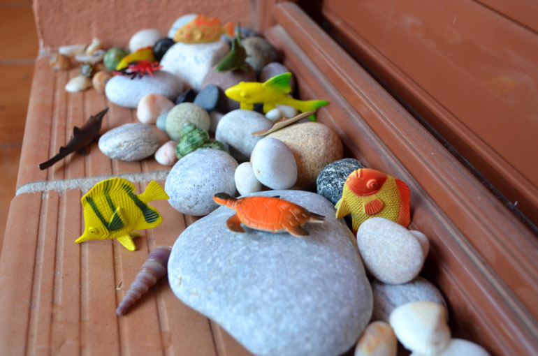 Хитами из игрушек стали, конечно, машинки и вот эти рыбки за 100 рублей/мешок. В сочетании с морскими камешками и ракушками из Фикс-прайс они стали великолепной игрушкой, увлекавшей сына в течение недели. Вот такая великолепная коллекция реалистичных рыбок из магазина «Смешные цены». Куда только не зайдешь в поисках чего-нибудь такого!