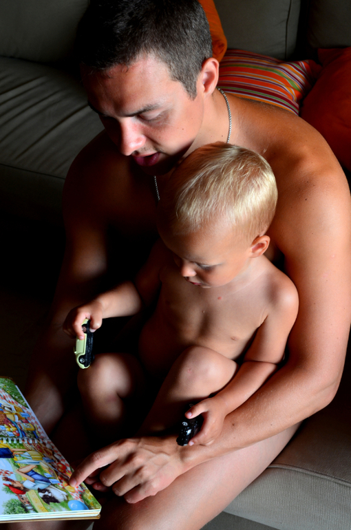 Иногда, когда появлялась пауза перед выходом из дома или при приготовлении еды, мы с Димой развлекались наклейками, пластилином (аж двумя видами - про него я уже писала) или чтением.