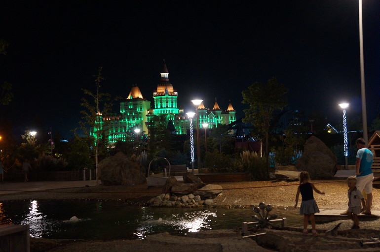 И кроме того дельфинарий, театр, экспериментариум, панда-парк, кафешки, сказочные фонтаны и много другое.
