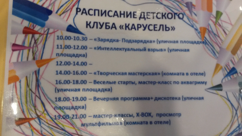 Работала с 10:00 до 21:00. Милые аниматоры проводили много разных занятий с детьми (зарядка, аквагрим, мастер классы по разнообразным видам творчества, минидиско и много еще чего). Мы там оказывались редко, но всегда были очень радостны и довольны. Единственное, что дети до 6 лет должны быть в сопровождении с родителями. Все бесплатно