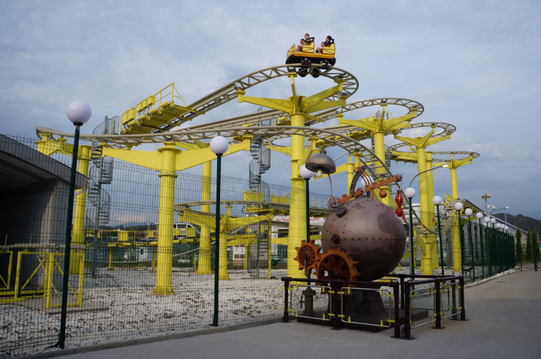 Это без сомнения отдельная история отдыха. Такого парка в России я не видела нигде. Как раз про такие места можно смело сказать «лучше один раз увидеть, чем сто раз услышать». За семь дней проживания нам предоставлялось два бесплатных посещения парка, чем мы и воспользовались. Сразу скажу, что даже за два раза мы не охватили и не осмотрели все возможности этой планеты развлечения и отдыха не только для детей, но и для взрослых. Чего тут только нет: и самый высокий аттракцион свободного падения «Жар Птица» (по типу Биг Бен), самая быстрая и экстремальная горка в России «Квантовый скачок» и много разных других и для таких не самых смельчаков, как мы с мужем. Есть отдельная детская зона с множеством качелек-каруселек.