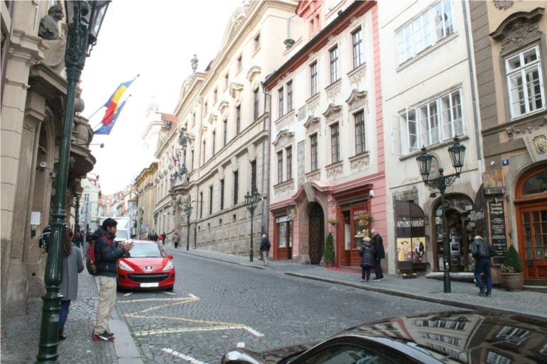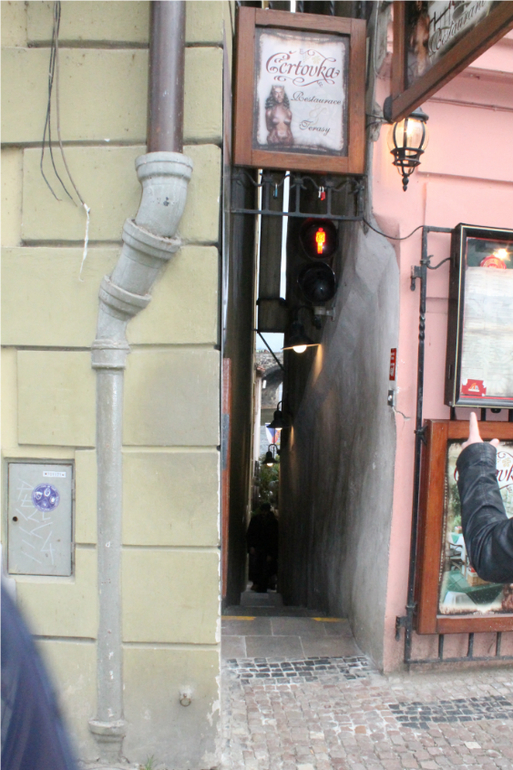 На обратном пути мы не смогли не заглянуть на самую узкую улочку Праги, называется "Винна Чертовка". Проход на ней возможен только по светофору, иначе вдвоем разойтись невозможно, т.к. ширина ее составляет 70см