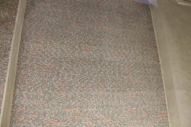 на стенах поименно перечмслены все имена и фамилии евреев, убитых во времена войны
