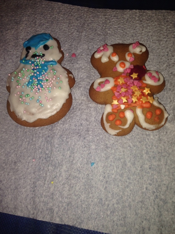 Приятная девушка помогала раскрашивать пряники.