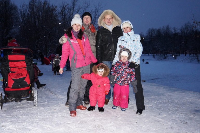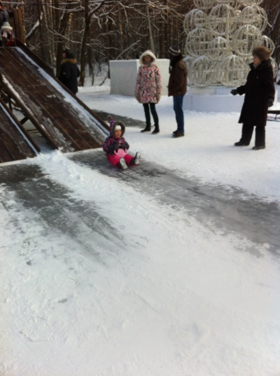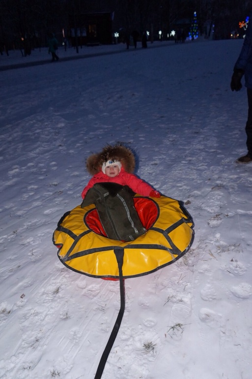 Вечером утеплившись по полной мы отправились кататься на горке в местном парке :)