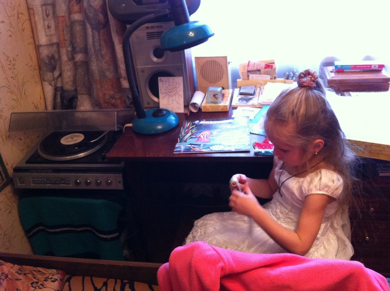 Как только Аня переступает порог его квартиры, сразу бежит в спальню и просит включить папины пластинки))))
