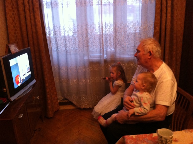 Какая умилительная картинка: вместе смотрят "Простоквашино"))