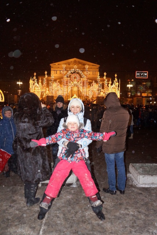 Костюмы потрясающие! Музыка.. Все было так красиво, что можно было любоваться бесконечно. Если бы не мороз. Варя проснулась перед началом, и просмотрели мы больше половины, потом все мы стали мерзнуть, и побежали греть. Аня плакала от того, что не смогла досмотреть до конца...