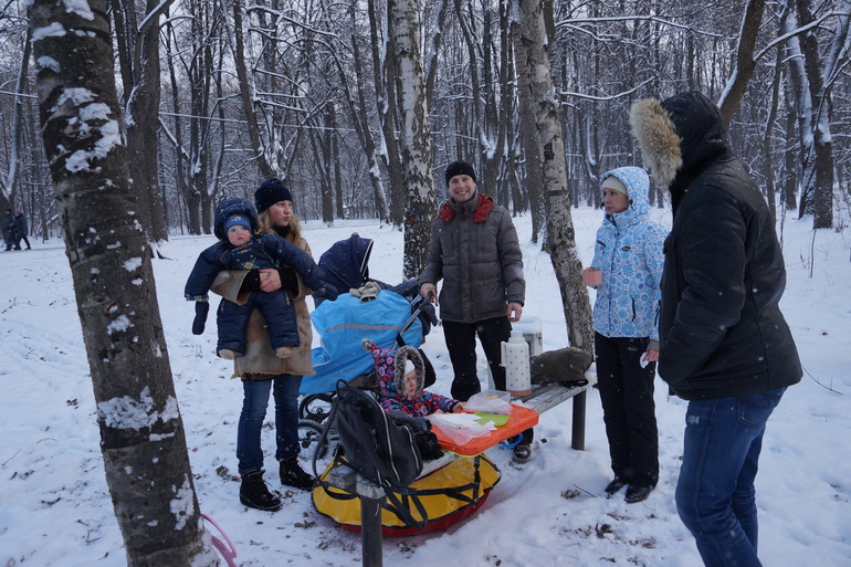Мы всегда с собой берем термос (иногда два: варим глинтвейн и чай) и вкусный перекус. В этот раз были блинчики с разными начинками)))