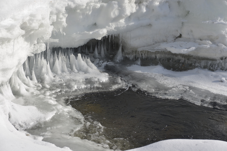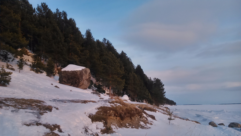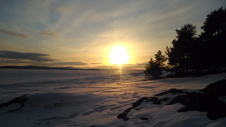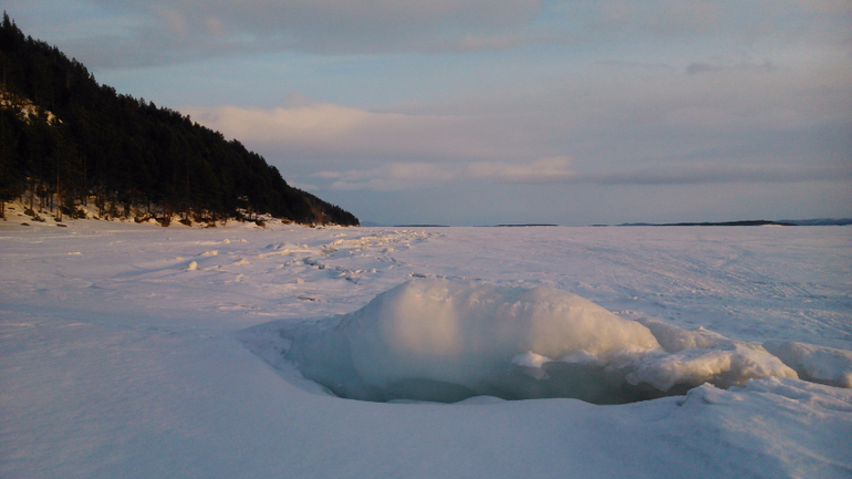 Москва нас провожала снегопадами и видимостью в 10 метров на протяжении всей Московской и Ярославской областей. Дорога зимой оказывается вся свободная от ремонтников) . В Пудоже остановились на ночь в мотеле Уют, очень все понравилось. Дорога прошла без приключений. Дочка спала, смотрела в окно, смотрела мультики, мечтала в слух. В Кандалакше были около 16 часов во второй день. Быстро заселившись в гостиницу - наш фаворит не первый год уже - «Гора Крестовая» - мы бросились смотреть на Белое море, которое к нашему удивлению, оказалось замерзшим.