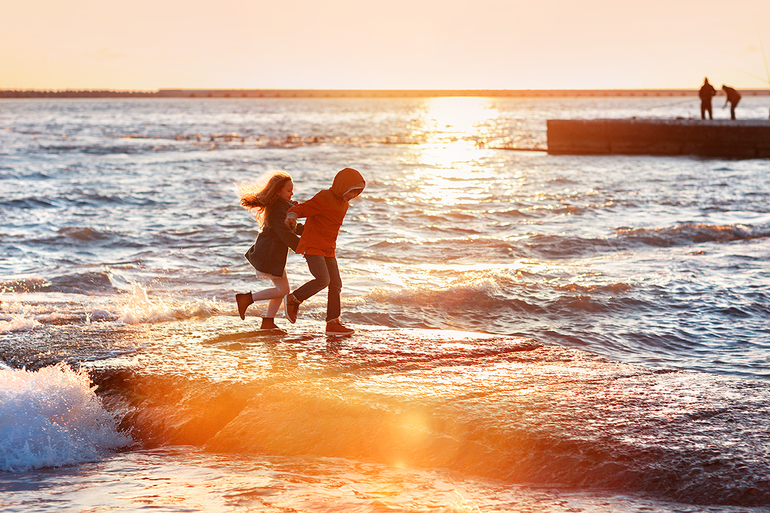 Одно из самых увлекательных развлечений - убегать от волн (вот за что спасибо плохой погоде, так это за волны!).