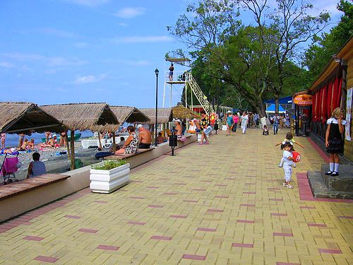 1. В центре поселка много людей, на окраине никого, жд оч близко, спуск к морю везде разный