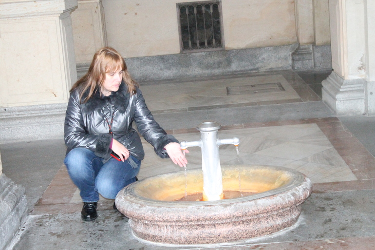 Посмотрели источник, который бьет наружу, высокий, находится в крытом помещении, говорят, что полезно там находиться и дышать воздухом, что-то типа естесственной ингаляции