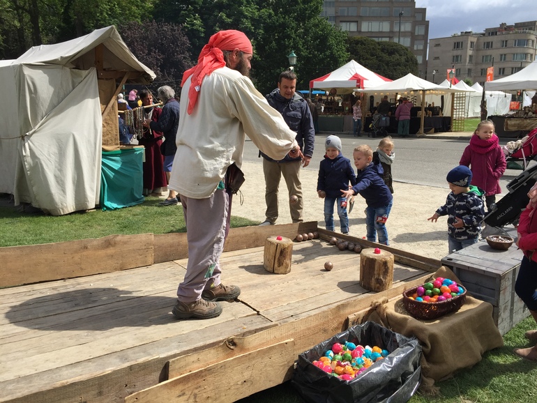Вернулись в Брюссель тем же поездом Thalys, отдохнули и все-таки решили сходить в музей военной истории и техники в parc du cinquantenaire, в который мы не попали в начале отпуска. В этот раз он работал, но оказалось, что оплачивать билеты тут можно только картой, которую именно в этот день мы оставили дома... Но мы ничуть не расстроились, так как попали на средневековую ярмарку в этом же парке (кстати, в первый раз, когда мы тут были в автомире, тут тоже была какая-то ярмарка и выступал бродячий цирк). Мальчишки прокатались на старинных аттракционах, поиграли в разные игры и постреляли из лука.