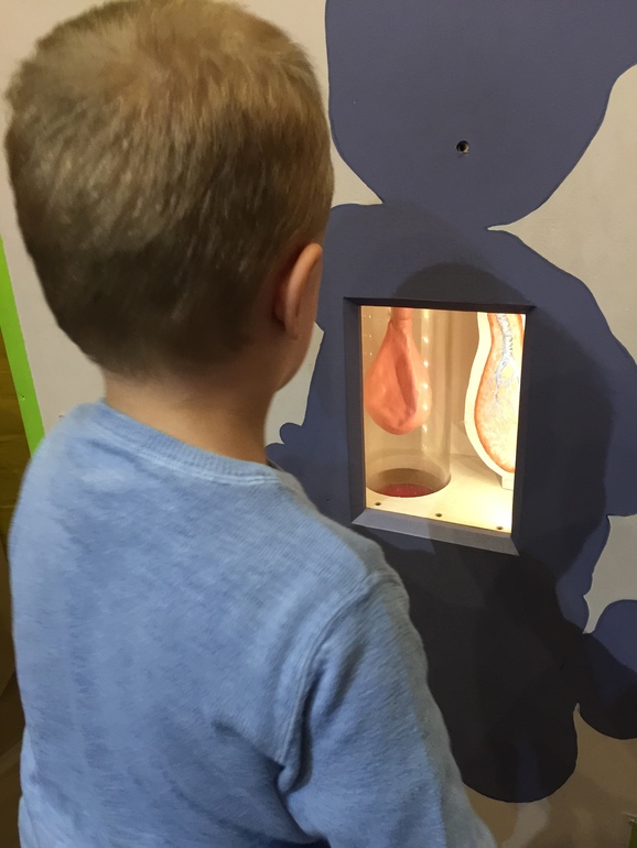 По сути этот музей - что-то среднее между научным музеем, городком профессий и игровой площадкой. Тут есть отделы моё тело, кулинария (мастер-класс), заправка, магазин, метро, автобус, дом, архитектура (мастер-класс), творческий мастер-класс, театр, природа, подводная лодка с настоящим перископом, игровая зона в стиле Алисы в стране чудес, сказочный лес, плюс на территории - сад с клеткой с козами и прудиком с маленькими рыбками, игровая площадка на улице. Мастер-классы все на французском языке, но некоторые понятны и без слов, например, на кулинарном дети испекли очень вкусное миндальное печенье. Подписи к экспонатам также на французском и нидерландском, но при знании хотя бы английского или немецкого все понятно. Мальчишкам было интересно, но 2,5 часа - очень мало, мы успели прямо совсем по чуть-чуть поиграть в каждой зоне.