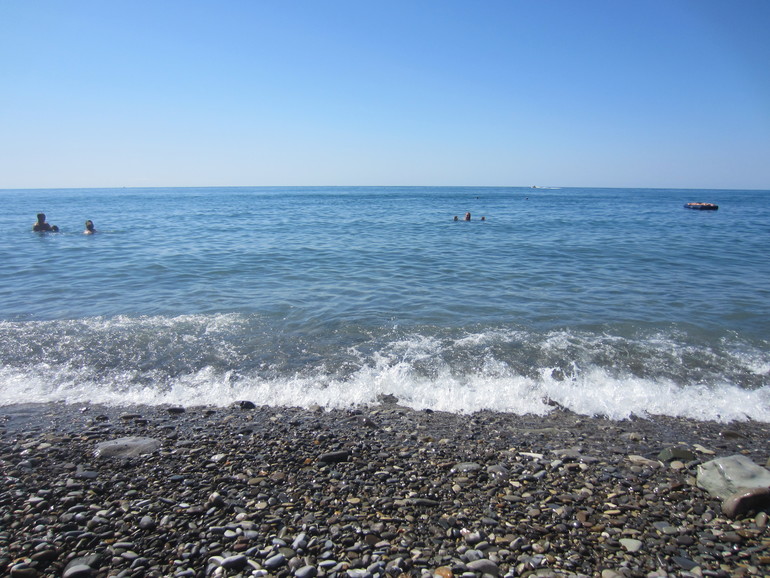 Мини гостиница на ул. Речная, пляж Багратион. Периодически уходили влево от пляжа, там народу меньше, но галька крупнее.